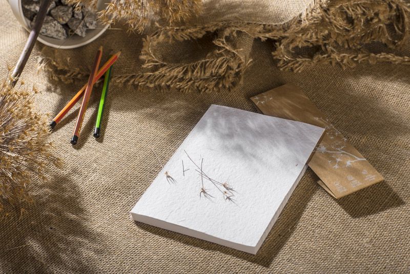 Šis piezīmju bloks ir unikāla piezīmju grāmatiņa ar vāku, kas izgatavots no kokvilnas un samteņu ziediem. Tas satur ziedu sēklas, kas veido 1–5% no blociņa svara. Iekšapas ir izgatavotas no 80 g/m² bieza kviešu salmu šķiedras papīra, un iekšpusē ir 80 lapas līniju rakstā. Piezīmju grāmatiņai ir arī noņemama kraftpapīra grāmatzīme. Apstrāde: apdruka.
