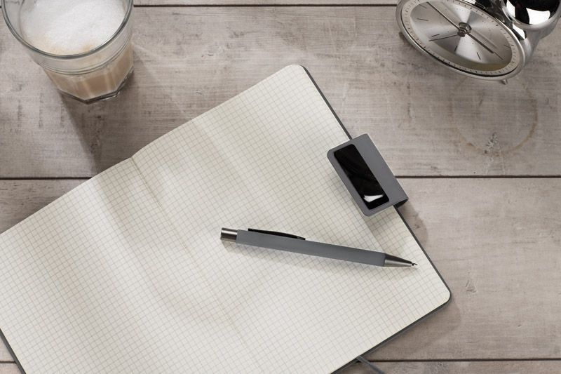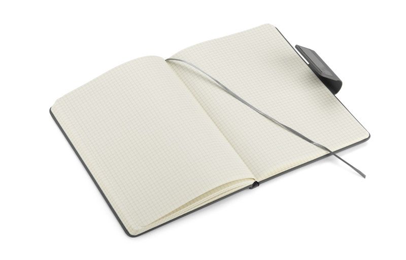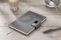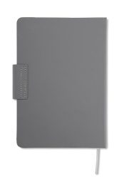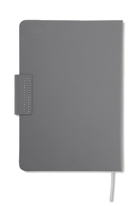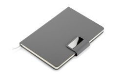 A5 piezīmju grāmatiņa ar matētu vāku un magnētisku aizdari, kas papildināta ar dekoratīvu plāksnīti. Iekšpusē ir 96 lapas rūtiņu rakstā. Apstrāde – apdruka.