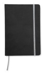 A5 piezīmju blokam ir 96 baltas lapas rūtaiņu rakstā. Elastīgā aizdares lente garantē izturību un ērtības. Svarīga priekšrocība ir dizaina iestrādes iespējas – gravējuma krāsa atbilst elastīgās lentes krāsai, kas rada vienotu un elegantu efektu.Apstrāde – apdruka vai gravējums.