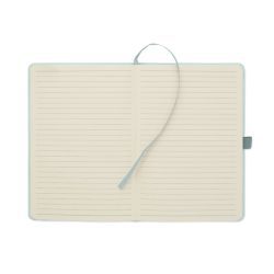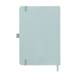 A5 formāta piezīmju bloks ar cietu RPET poliestera vāku. 192 lapaspuses līniju rakstā, 70 g/m². Pieskaņotas krāsas poliestera lente, cilpa pildspalvai, kraftpapīra birka. Apstrāde – apdruka.