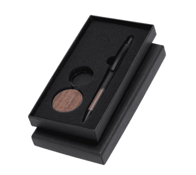 Elegants komplekts ar A5 piezīmju bloku un pildspalvu. Pildspalvai ir RCS sertificēts pārstrādāta misiņa korpuss ar sudrabaini hromētu apdari, apakšējais korpuss ar krāsas pārklājumu, metāliski aksesuāri un LUXE logotips uz vidējā gredzena. Tintes krāsa: zila. Rakstīšanas garums: 400 metri. Piezīmju blokā ir 80 lapas ar 80 g/m² krēmkrāsas lapām līniju rakstā, pārstrādāti, ādai līdzīga materiāla plastmasas vāki, elastīga gumija un kabata. Metāla aksesuārs uz gumijas.