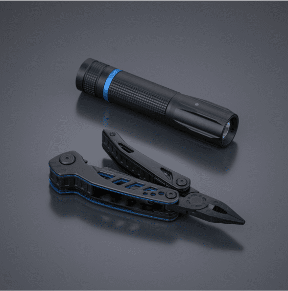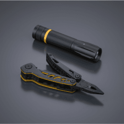Daudzfunkcionāls instruments un vidēja izmēra uzlādējams lukturītis, 1800 mAh.