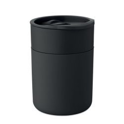 PP krūze ar silikona apvalku un PP bīdāmu vāku. Tilpums: 330 ml. Apstrāde: apdruka.