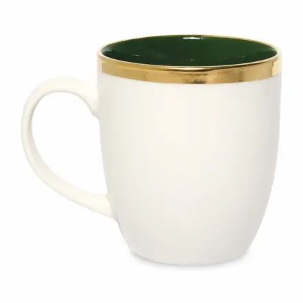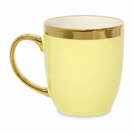 Porcelāna krūze ar krēmkrāsas baltu nokrāsu un ar rokām apgleznotu zelta apdari. Bella zelta krūze ir pieejama 27 krāsās. Iespēja kombinēt krūzes iekšējo un ārējo krāsu. Tilpums: 330 ml.