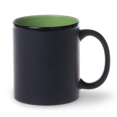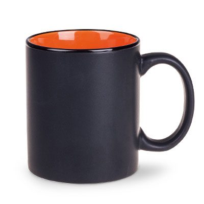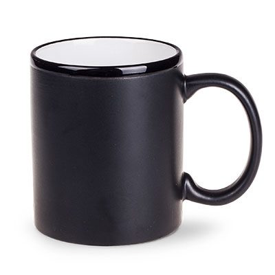 Reklāmas krūze, kas apvieno klasisko formu ar moderno satīna glazūras tehnoloģiju. Moderno izskatu uzsver melnā, spīdīgā mala. Apstrāde – apdruka.