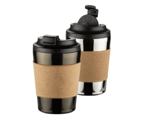 350 ml termokrūze apvieno spīdīga tērauda un dabīga korķa apdari, radot elegantu un modernu kafijas krūzi. Nerūsējošā tērauda iekšpuses dizains ar mērskalu atvieglo dzēriena mērīšanu, dubultsienas saglabā dzēriena temperatūru līdz pat 3 stundām. Atlokāmais vāks ar augšpusē atveramu atloku nodrošina ērtu lietošanu gan ceļā, gan birojā. Neslīdošā pamatne palielina stabilitāti uz gludām virsmām. Apstrāde: apdruka.