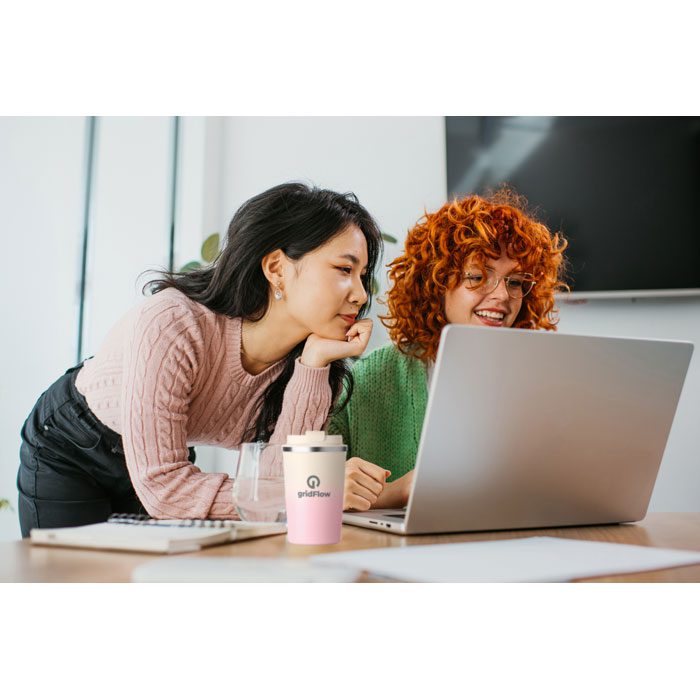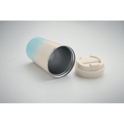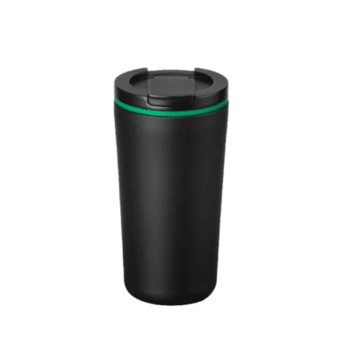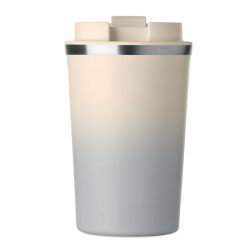 Dubultsienu pārstrādāta nerūsējošā tērauda (90% pārstrādāta nerūsējošā tērauda un 10% nerūsējošā tērauda) krūze ar PP vāku. Tilpums: 350 ml. Neizplūst.