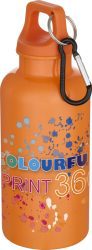 Izturīgā ūdens pudele izgatavota no RCS sertificēta pārstrādāta PET. Tā ir ideāla treniņu laikā, vienas dienas izbraucienos vai birojā. Viensienas Oregon pudelei ir skrūvējams vāciņš un karabīne pudeles piestiprināšanai pie somas. RCS sertificēta pārstrādāta PET plastmasa, silikona plastmasa, nerūsējošais tērauds. Apstrāde: apdruka.