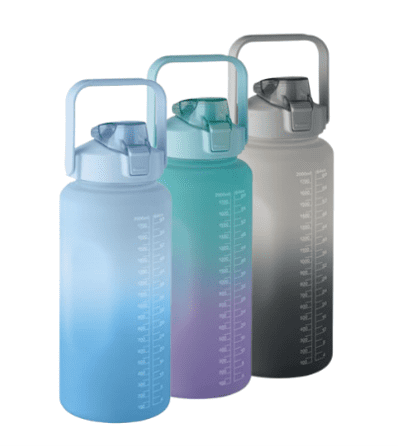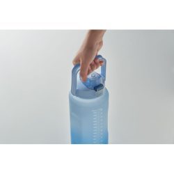 RPET pudele ar vienu roku atveramu vāku un salmiņu, drošības slēdzeni un rokturi. Škidruma noplūdes droša. Tilpums: 2000 ml. Apstrāde: apdruka.