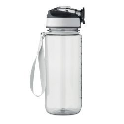 Motivējoša sporta ūdens pudele no RPET materiāla ar integrētu salmiņu, mīkstu silikona iemutni, ar vienu roku atveramu vāku un drošības slēdzeni. Komplektā pārnēsāšanas siksnu no RPET satīna materiāla. Tilpums 700 ml. Nenoplūst. Apstrāde: apdruka.