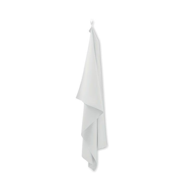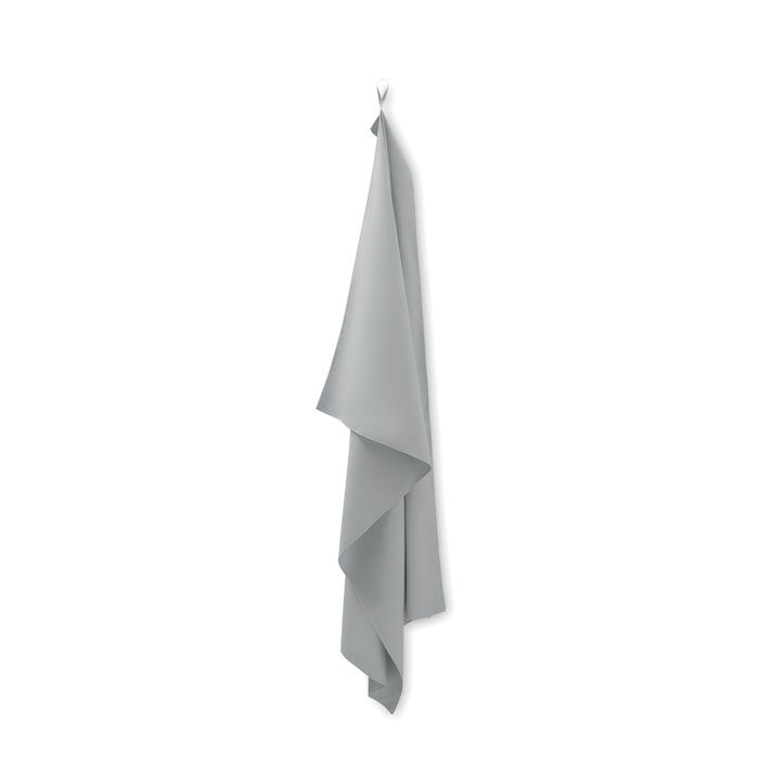 Mikrošķiedras dvielis, kas izgatavots no 90% poliestera un 10% poliamīda, ar elastīgu pakaramā cilpu. Viegls un ātri žūstošs. Izmērs 100 cm x 150 cm. Apstrāde: apdruka vai izšuvums.