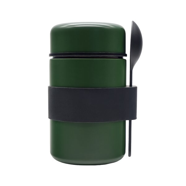 Nerūsējošā tērauda dubultsienu pārtikas termoss ar plastmasas karotīti. Trauks saglabā 40 grādu temperatūru līdz pat 15 stundām Termosa tilpums 460ml.