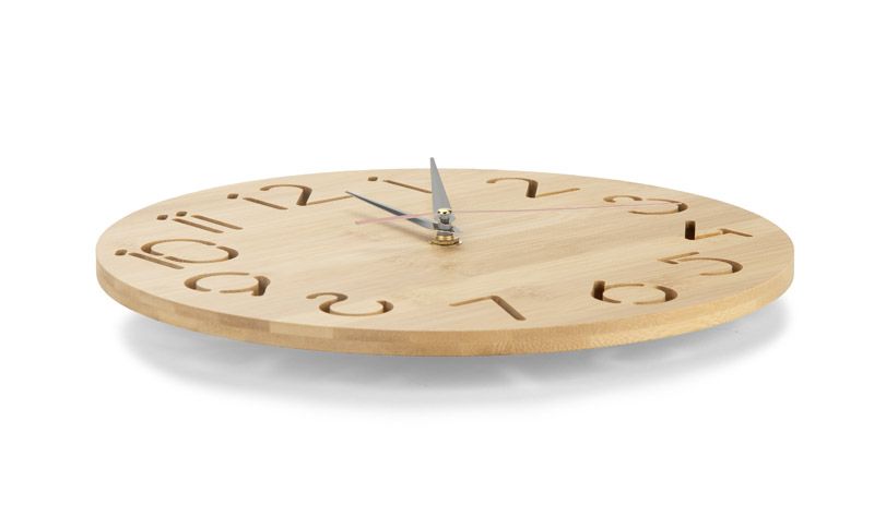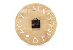 Sienas pulkstenis apvieno funkcionalitāti un estētiku. Izgatavots no bambusa, tas izceļas ar savu moderno dizainu, savukārt caurspīdīgie cipari piešķir tam vieglu un smalku pieskārienu. Klasiska stila rādītāji nodrošina ērtu laika nolasīšanu, un klusais mehānisms padara pulksteni piemērotu izmantošanai mājās, birojā vai kafejnīcā. Montāža ir vienkārša, un to darbina viena AA baterija (nav iekļauta komplektā). Apstrāde – apdruka vai gravējums.
