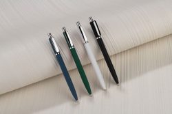 Moderna metāla lodīšu pildspalva ar mīkstu pārklājumu. Gumijotā virsma nodrošina patīkamu un drošu satvērienu, un īsais, noapaļotais klipsis sudrabainā metāla apdarē piešķir smalku izskatu. Pildspalvai ir automātisks ievilkšanas mehānisms un G2 tipa uzpilde ar rakstīšanas biezumu 0,7 mm, kas garantē vienmērīgu un precīzu rakstīšanu. Apstrāde: apdruka vai gravējums.