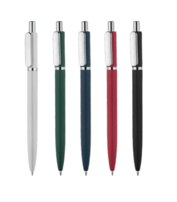 Metāla pildspalva ar krāsainu virsmu un un apdari rozā zelta krāsā. Pildspalvas tinte ir zilā krāsā. Apstrāde – apdruka vai gravējums.
