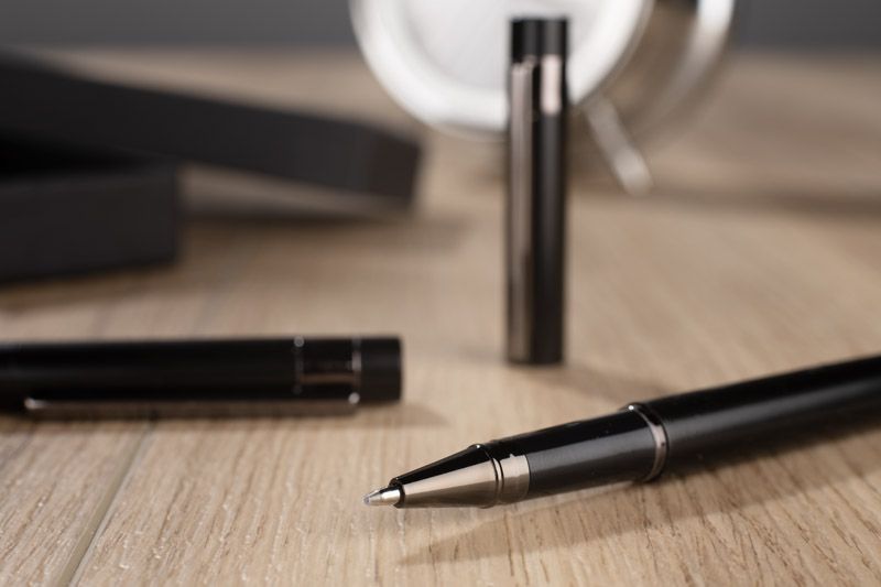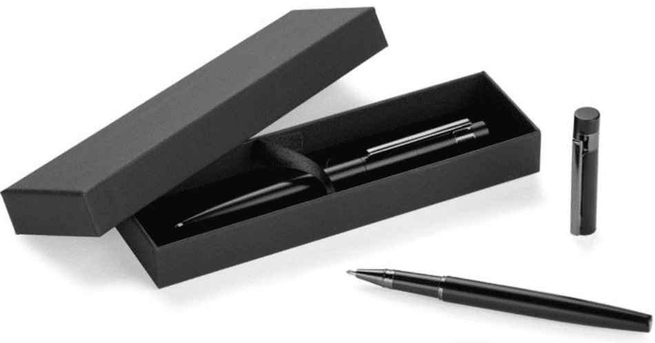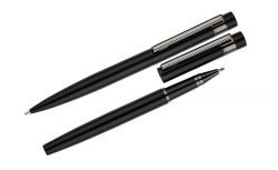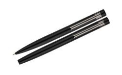 Rakstāmpiederumu komplekts kastītē ar 2 veidu metāla pildspalvām. Komplekts ir papildināts ar elegantu tumši pelēku klipsi, kas piešķir komplektam profesionālu pieskārienu. Lieliska izvēle biznesa dāvanai. Apstrāde – apdruka vai gravējums.