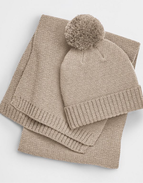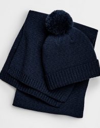Mīkstas luxusa dzijas adīta cepure un šalle, kas piemērota gan sievietēm, gan vīriešiem. Viens izmērs. Šalle: 165 x 28cm. Materiāls: 50% viskoze, 30% poliesters, 20% neilons. Apstrāde : izšuvums, pievienota personalizēta etiķete.