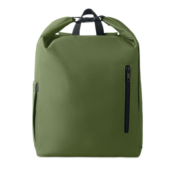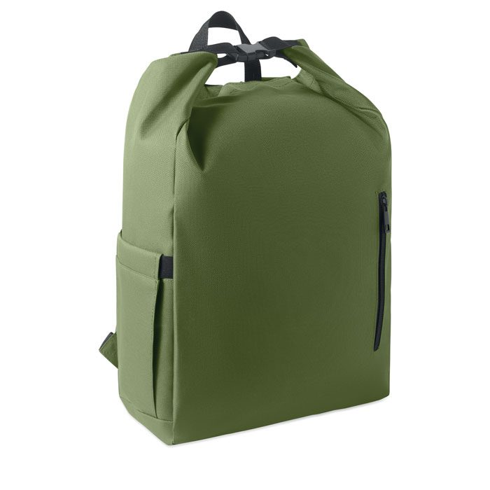 15″ datorsoma –  mugursoma ar sarullējamu augšdaļu, kas izgatavota no 600D RPET poliestera ar 210D RPET polsterētu oderi. Aprīkota ar rāvējslēdzēja kabatu priekšpusē, elastīgu sānu kabatu un regulējamām plecu siksnām. Apstrāde – apdruka.