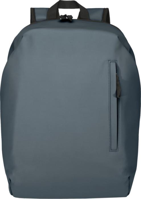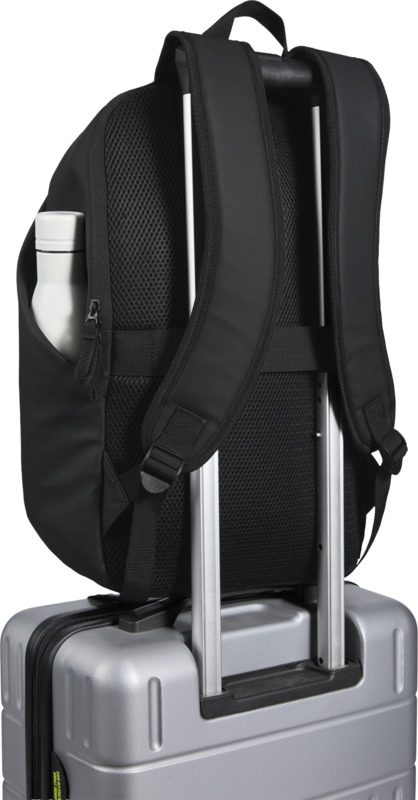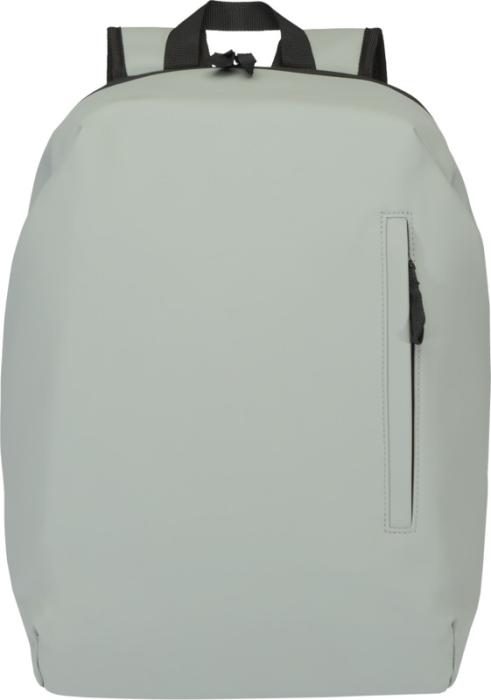 Soma izgatavota no augstākās kvalitātes GRS sertificētas pārstrādātas PU ādas ar pieskaņotas krāsas RPET oderi. Somai ir nodalījums klēpjdatoram ar piekļuvi no aizmugures, divas modernizētas sānu kabatas un priekšējā kabata ar rāvējslēdzēju. Elpojošs aizmugurējais panelis nodrošina komfortu visas dienas garumā. Tilpums: 18 litri. GRS pārstrādāta PU. Apstrāde: apdruka.