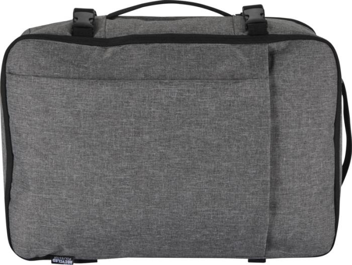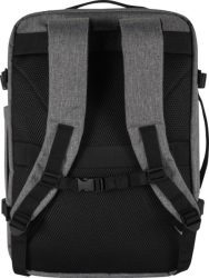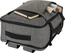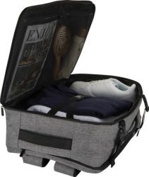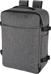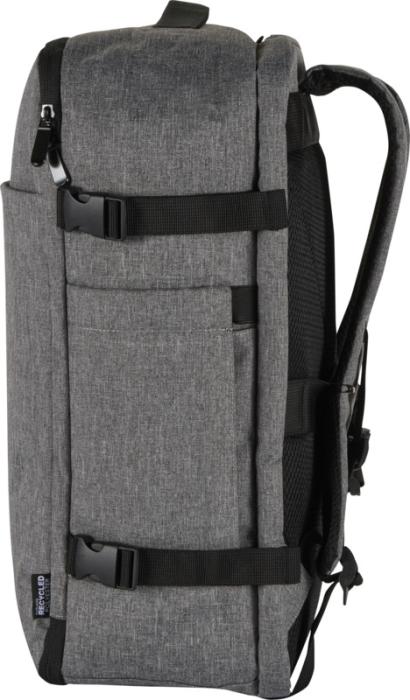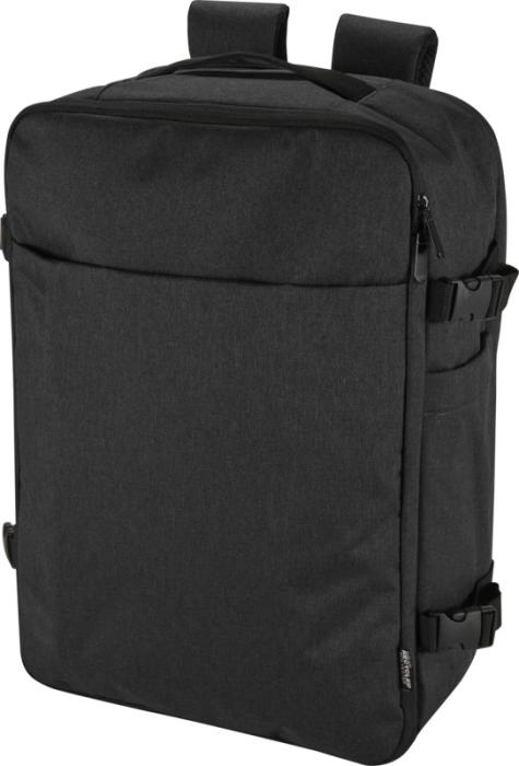 Soma izgatavota no GRS sertificēta pārstrādāta poliestera ar RPET oderi, Libra 17 collu rokas bagāžas mugursoma ir izstrādāta, lai atbilstu aviokompāniju rokas bagāžas prasībām, padarot to par ideālu ceļabiedru. Tajā ir atsevišķs klēpjdatora nodalījums ierīcēm līdz 17 collu izmēram, ietilpīga galvenā sadaļa ar elastīgām siksnām un sieta nodalījumiem mantu drošībai un kārtībai, kā arī divas lielas priekšējās kabatas ar rāvējslēdzēju ērtai piekļuvei nepieciešamajām lietām. Mugursomai ir elpojošs aizmugurējais panelis, ratiņu siksna, regulējamas plecu siksnas ar krustenisku krūšu siksnu, kā arī rokturi gan augšpusē, gan sānos daudzpusīgām nēsāšanas iespējām. Šī mugursoma, kas ir piemērota komandējumiem, attālinātam darbam vai nedēļas nogales ceļojumiem, apvieno elegantu dizainu ar praktisku funkcionalitāti dzīvei kustībā. GRS sertificēts pārstrādāts poliesters. Apstrāde: apdruka.