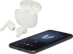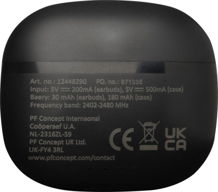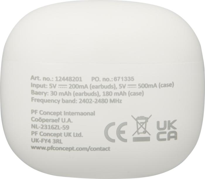 Šīs stereo austiņas ir izgatavotas no pārstrādātas plastmasas un aprīkotas ar mīkstiem silikona ausu uzgaļiem ērtai valkāšanai. Komplektā ietilpst kompakts uzlādes maciņš. Ar Bluetooth® 6.0 tās piedāvā līdz pat 4 stundām atskaņošanas vai sarunu laika un uzlādējas tikai 1–1,5 stundās. Komplektā ietilpst 30 cm USB-A uz C tipa uzlādes kabelis. Izgatavotas no pārstrādātas ABS plastmasas. Apstrāde: apdruka.