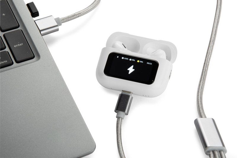Pārstrādātas ABS  bezvadu stereo austiņas ar mikrofonu un 25 mAh akumulatoru. Spēlēšanas laiks apm. 3 stundas. Komplektam ir uzlādes LCD displejs. Iekļauts C tipa uzlādes savienojums un 250 mAh uzlādes stacija.