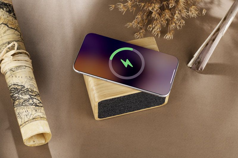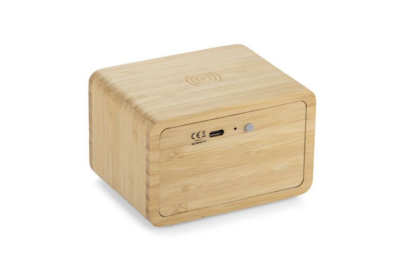 5 W bezvadu skaļrunis, kas apvieno mūzikas atskaņošanu ar Qi uzlādi mobilajām ierīcēm (15 W). Darbināms ar uzlādējamu litija jonu akumulatoru, tas darbojas bez vadiem līdz pat 4 stundām. Iebūvētais Bluetooth modulis nodrošina stabilu savienojumu ar tālruni līdz pat 15 metru rādiusā. Dabīgais bambusa korpuss labi izskatās gan uz galda, gan pie gultas. Ierīce tiek uzlādēta, izmantojot USB-C portu (kabelis nav iekļauts komplektā), un tās pilnas uzlādes laiks ir aptuveni 90 minūtes. Apstrāde: apdruka.